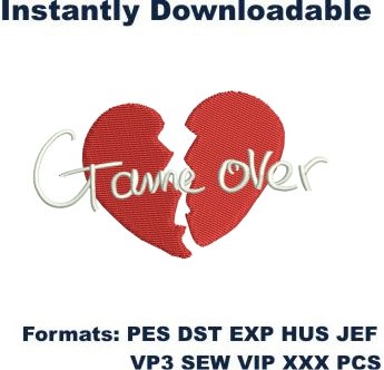 This is Broken Heart game over Embroidery file. The designs work well on all embroidery machines. When paid as mentioned for the designs, you instantly get a downloadable digital file of machine embroidery. You won’t receive any physical items but a digital file to use. Since it’s a digital download, you cannot anticipate a refund or exchange.