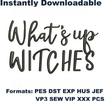 This is What Up Witches Embroidery file. The designs work well on all embroidery machines. When paid as mentioned for the designs, you instantly get a downloadable digital file of machine embroidery. You won’t receive any physical items but a digital file to use. Since it’s a digital download, you cannot anticipate a refund or exchange.